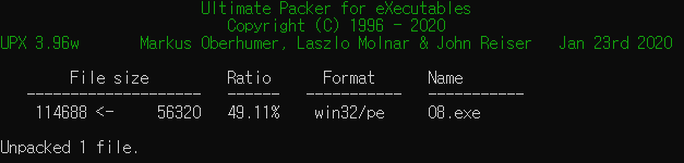 UPX 패킹이 진행되어있다. 빠르게 언패킹을 진행해자.