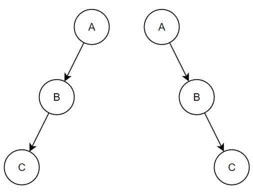 오른쪽 또는 왼쪽 서브트리만 가짐