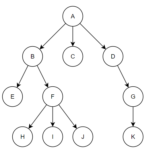 | 루트(Root) 노드 | 부모가 없는 하나의 노드 / A 노드 |