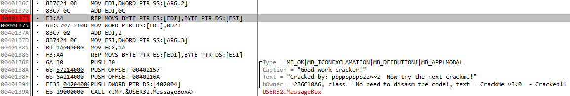 그리고 위 REP 구문을 통해서 Cracked by: 뒤에 XOR 계산된 14바이트 글자가 들어가게 된다.